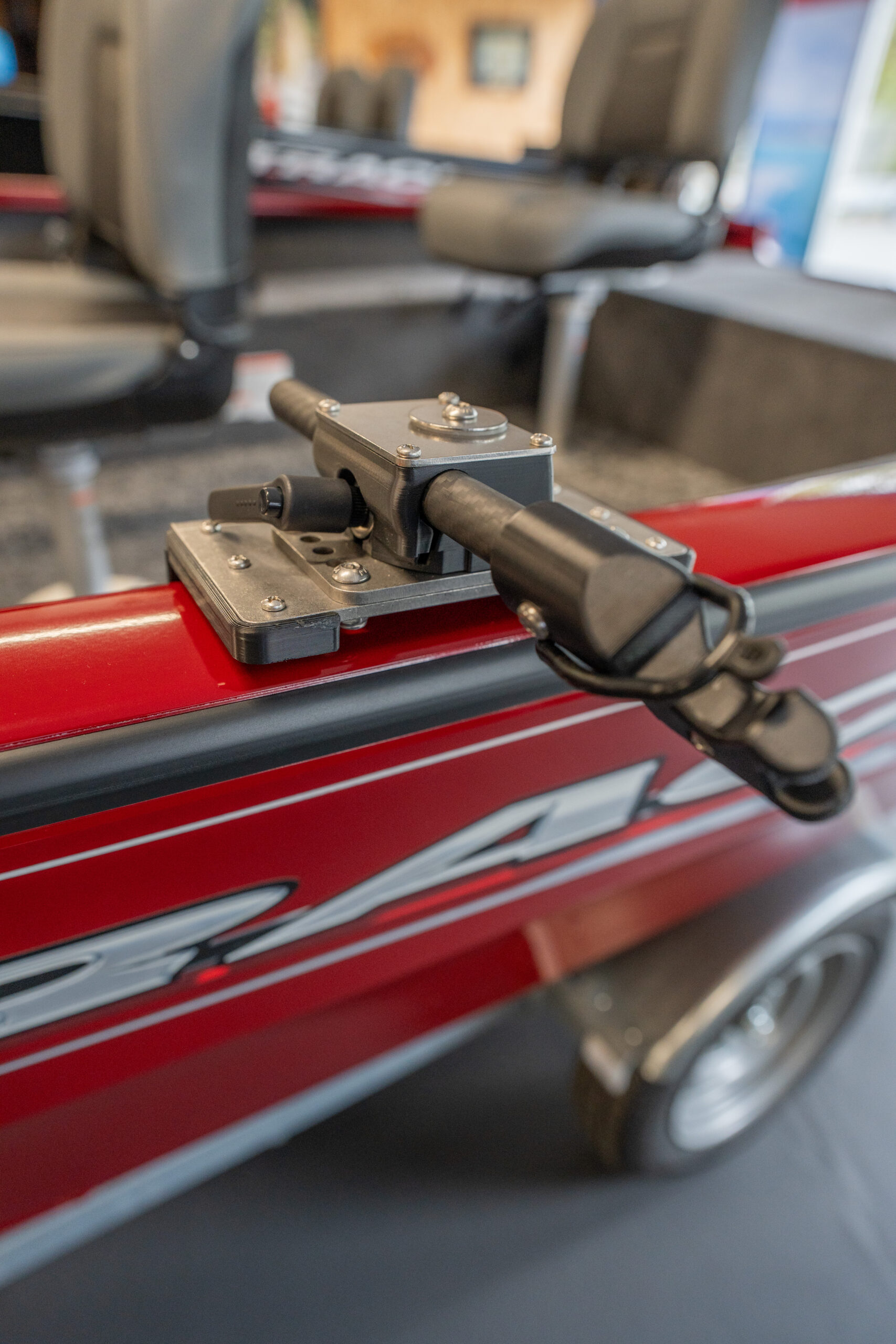 Cette version 2.0 s’installe directement sur la bordure ou via une plaque d’adaptation de votre bateau, sans nécessiter la plaque de montage de la barre elle-même. Le bras de soutien est réglable en longueur, ce qui vous permet de l’ajuster parfaitement à la configuration et à l’espace de votre pont.