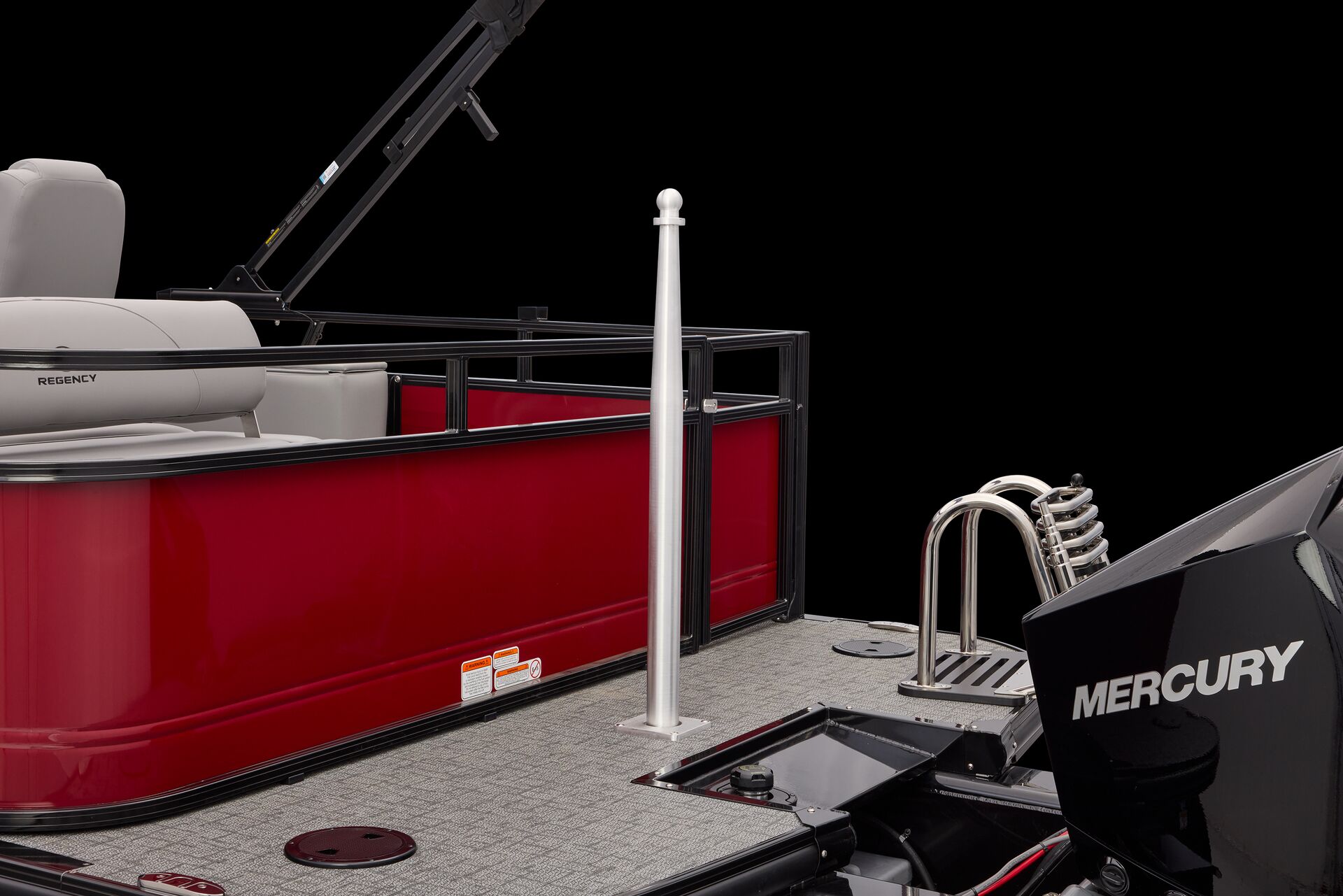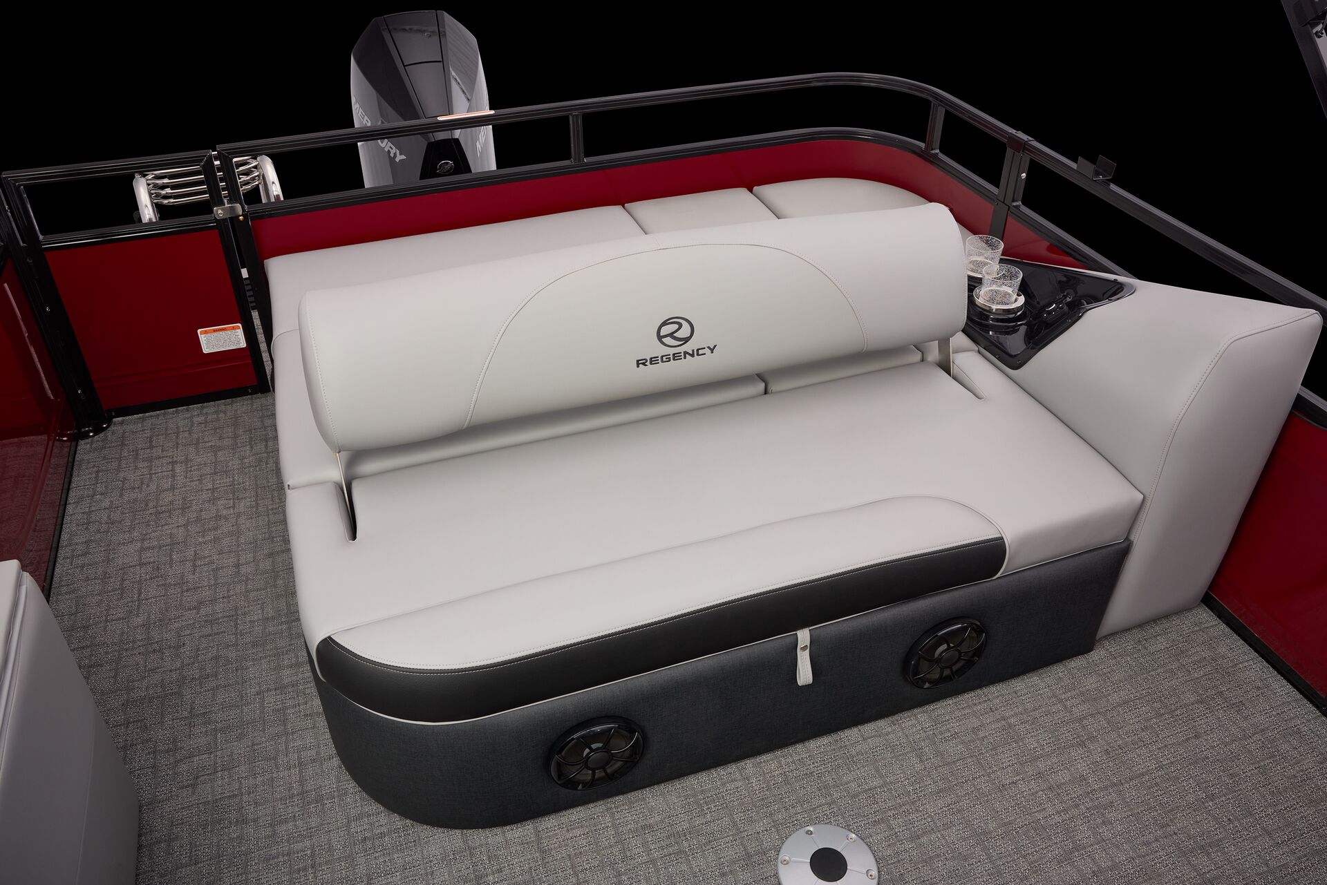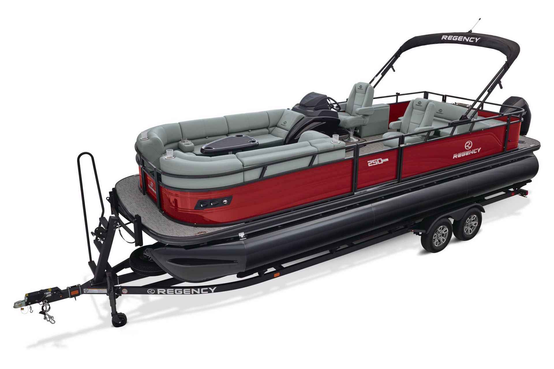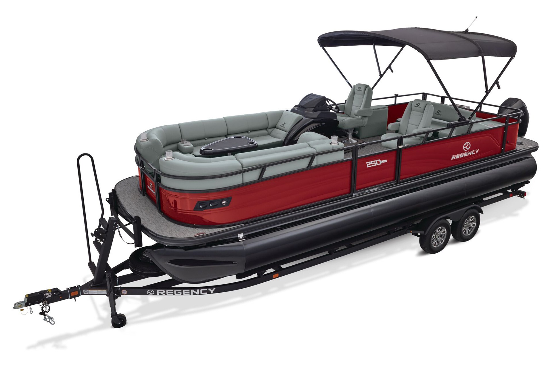 Le Regency 250 DL RF est un lounge boat (pontoon) haut de gamme, conçu pour ceux qui veulent transformer chaque sortie en un moment de qualité— que ce soit pour une croisière relaxante au coucher du soleil, des soirées entre amis ou une journée en famille. Ce modèle se distingue par sa configuration avec un bain de soleil à l’arrière, le « RF » signifie d’ailleurs Rear Facing (face à l’arrière). Ce modèle intègre une vaste zone lounge à l’avant avec table et rangements, 1 fauteuil pilote confortable ainsi que celui de son copilote, ainsiqu’une zone de détente et de bronzage avec le bain de soleil tourné vers la poupe du bateau. Offrant un confort incomparable et une expérience unique à bord unique.