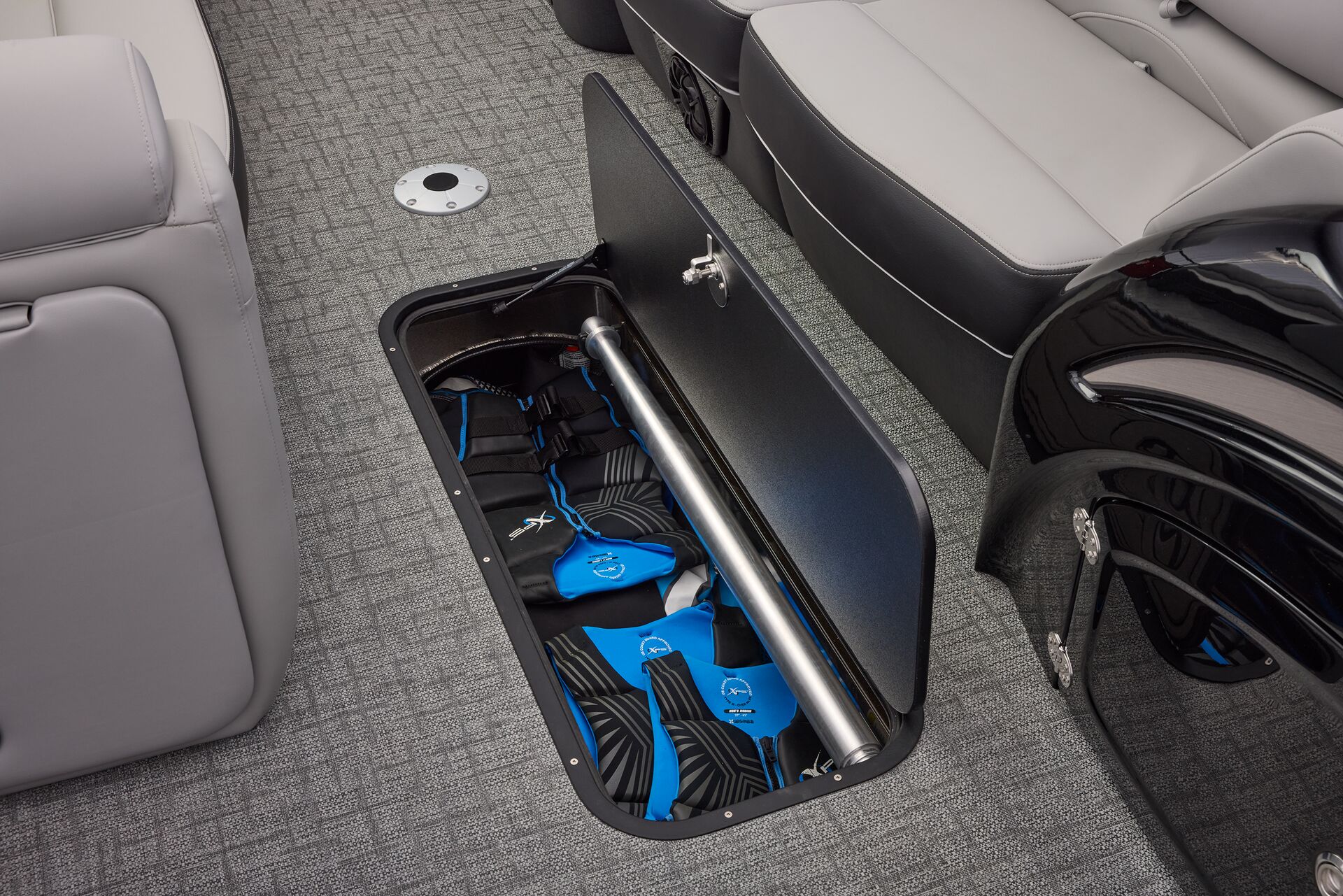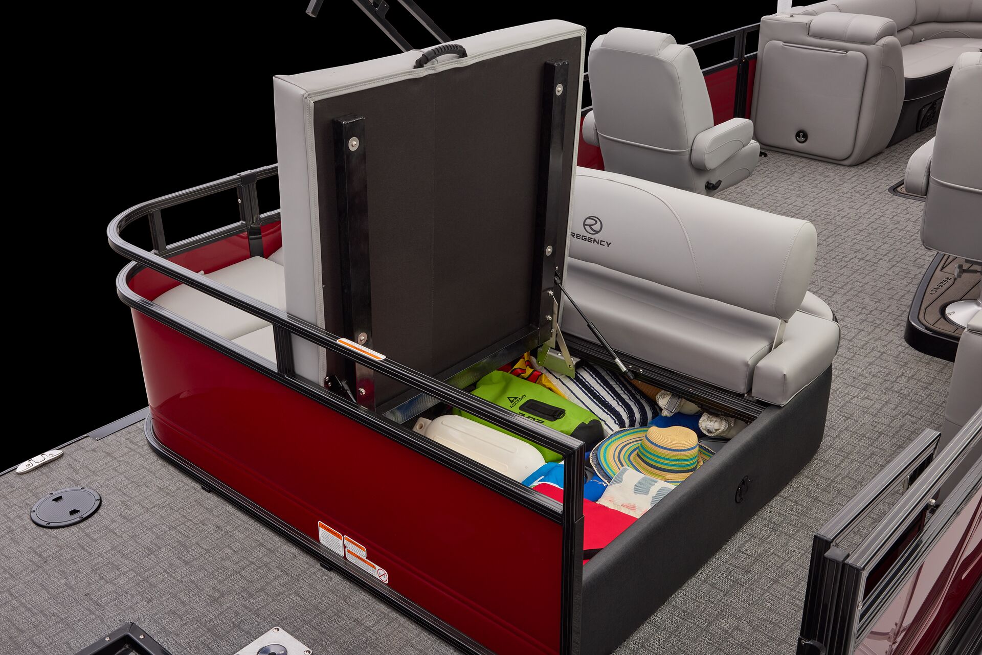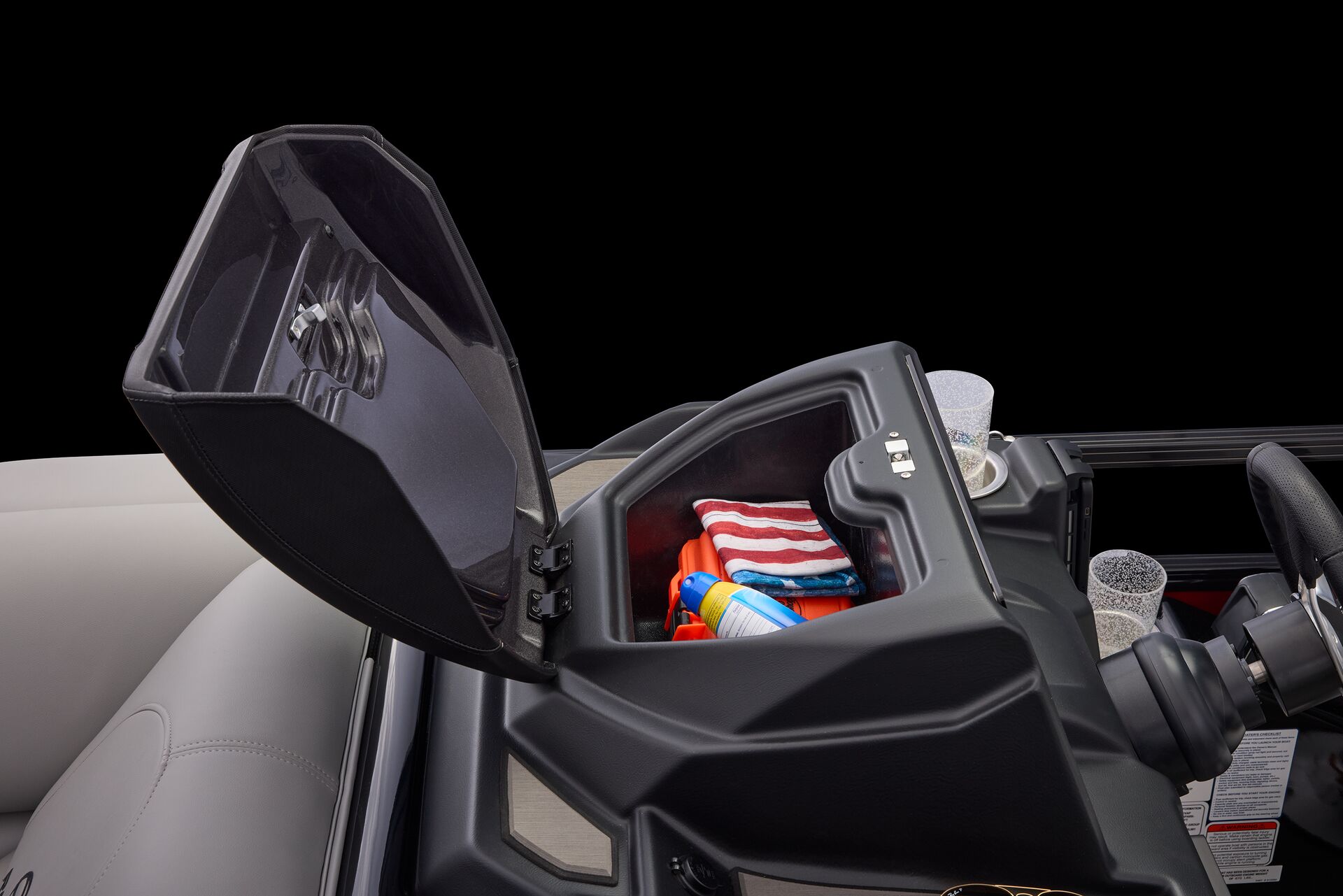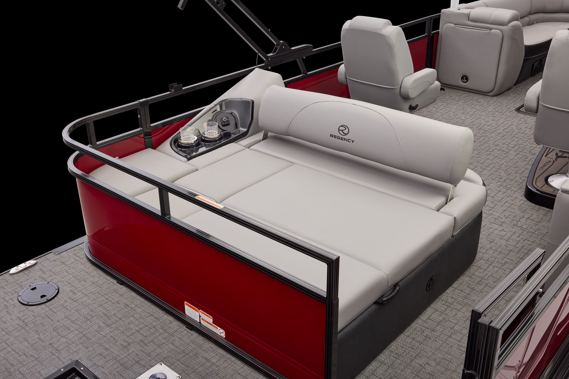 Le navigateur bénéficie de la tablette tactile « REGENCY® omni2™ 12″ touchscreen » permettant de contrôler le bateau. Il pourra également prendre le contrôle du système audio Wet Sounds® et dispose d’un chargeur sans fil Scanstrut®. Autant d’équipements qui font de la navigation un moment sophistiqué et intuitif.