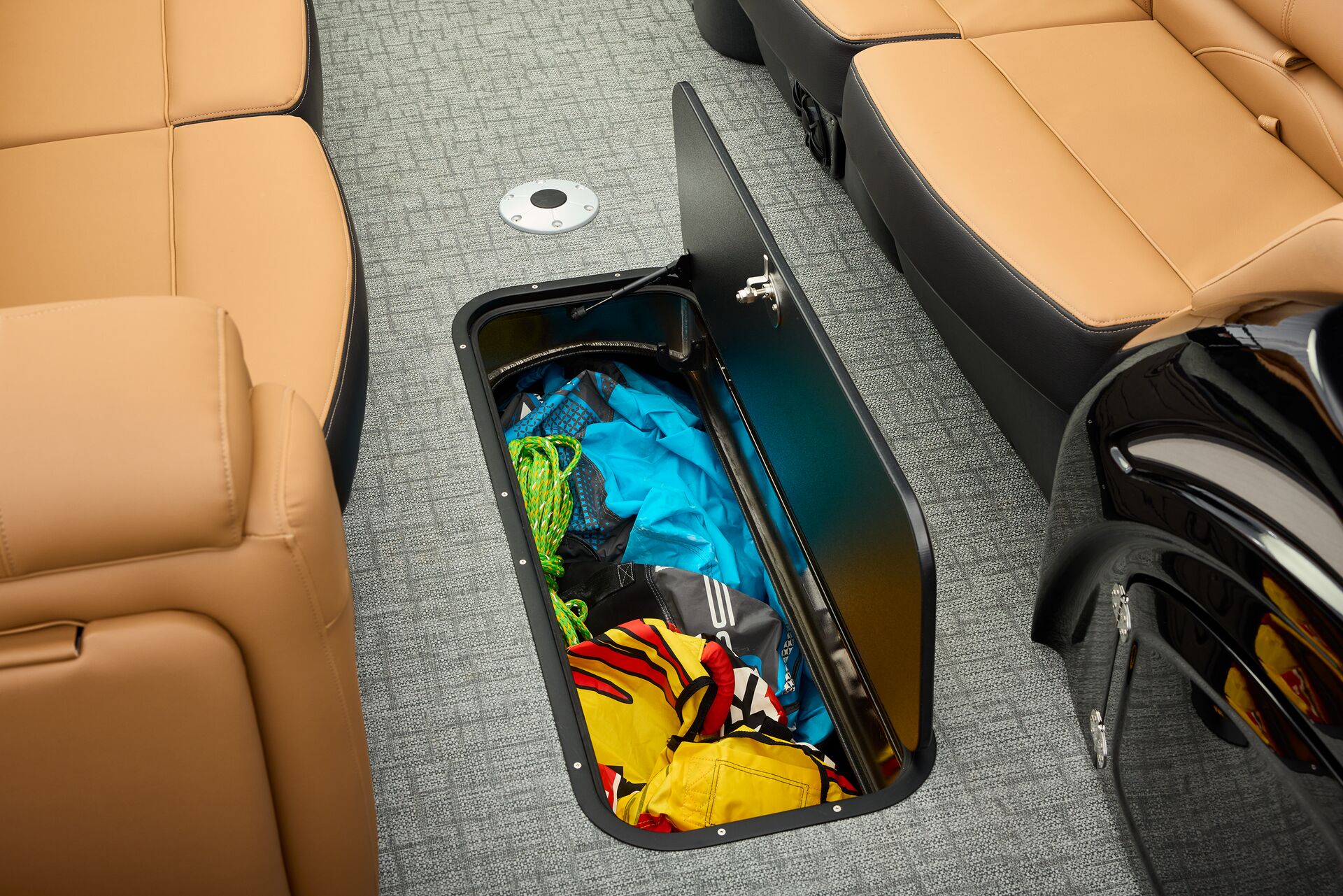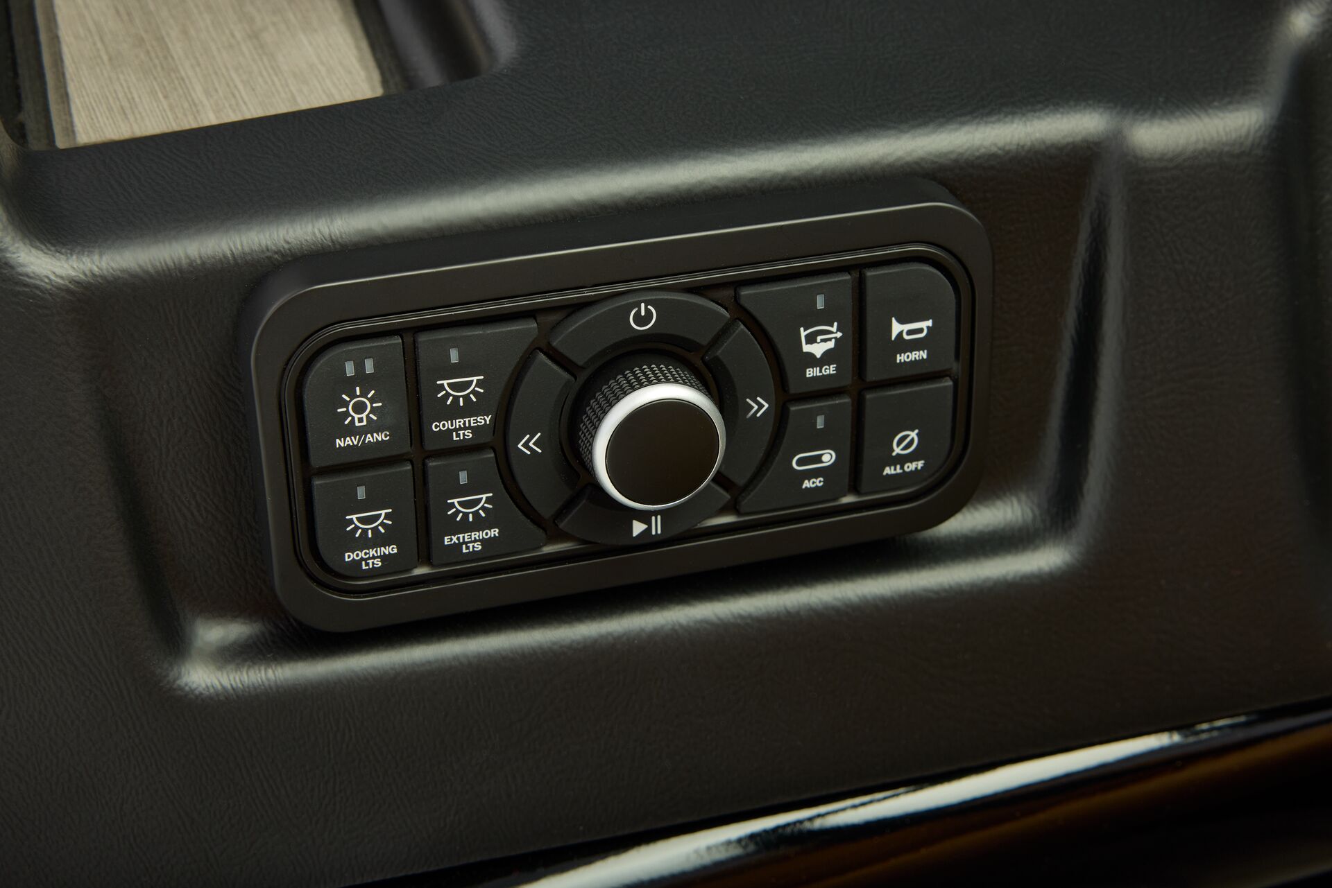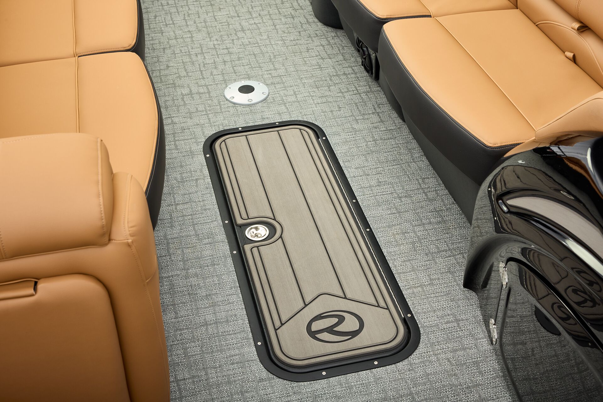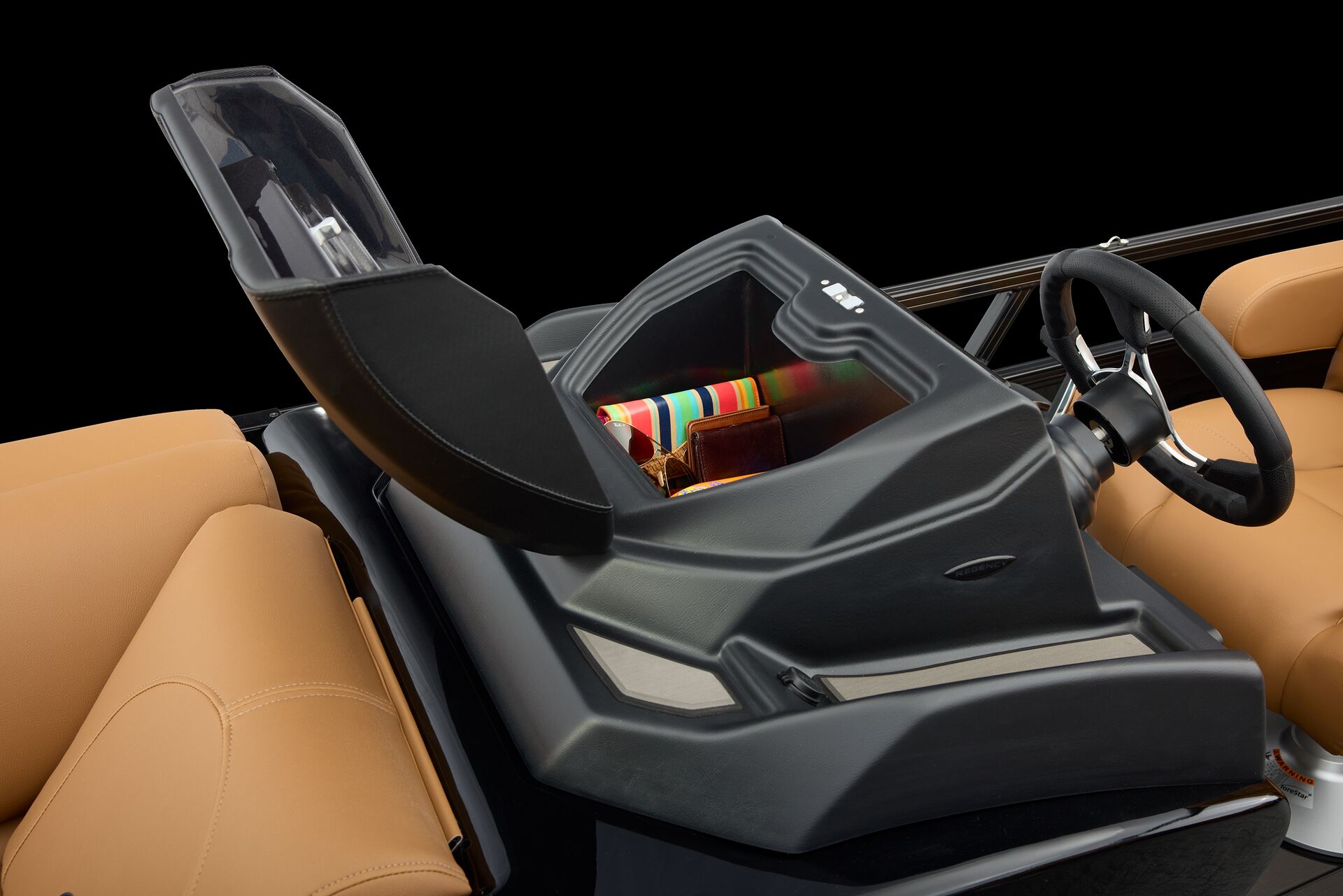 Son design distinctif s’illustre par sa clôture audacieuse et sa finition durable DIAMOND COAT™ 3.0, tandis que le système d’éclairage RGB synchronisé avec votre musique crée une ambiance personnalisée à bord sans déranger vos voisins sur les plans d’eau. À bord, les canapés profonds avec leurs dossiers rembourrés, le revêtement vinyle tissé premium au sol ainsi que les charnières de coffre silencieuses invitent à la détente et à l’organisation optimale de vos affaires. Ranger et récupérer vos affaires sans avoir à déranger vos amis.