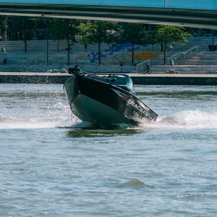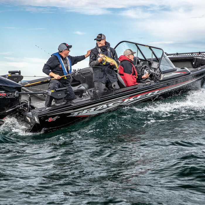 Le TRACKER® PRO GUIDE V‑16 WT impressionne par sa coque Deep V compacte mais redoutablement efficace. Son pare-brise central (walk-thru) vous protège du vent, des embruns et du froid, pour des sorties confortables quelles que soient les conditions météo.