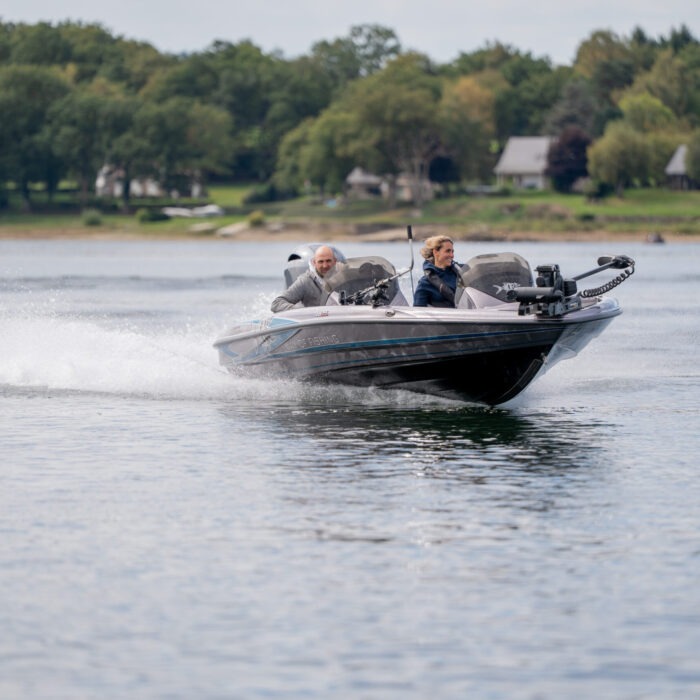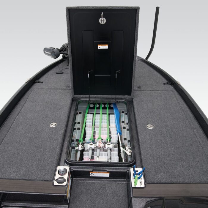 Le Triton 20XP est équipé d’un pont avant spacieux offrant une stabilité maximale et suffisamment d’espace pour plusieurs pêcheurs. Le rangement verrouillable sous les pieds permet de garder tout votre équipement au sec et en sécurité.